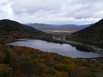 Echo Lake seen from the Cannon Mountain aerial tramway in October 2008 | |