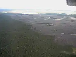 The taiga sub-zone contains one domain, the spruce-lichen domain, and extends from the 52° to 55° north. It differs from the spruce-moss forest mainly by the more sparse forest cover. Black spruce, which is adapted to the harsh climate with low precipitation, grows in a carpet of lichens. Balsam fir and jack pine are found at the northern limit of their range. Fires can destroy huge areas in this domain.[2]