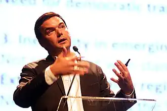 Conversely, economists in other specializations have started to write a new kind of economic history which makes use of historical data to understand the present day.[a 2] A major development in this genre was the publication of Thomas Piketty's Capital in the Twenty-First Century (2013). The book described the rise in wealth and income inequality since the 18th century, arguing that large concentrations of wealth lead to social and economic instability. Piketty also advocated a system of global progressive wealth taxes to correct rising inequality. The book was selected as a New York Times best seller and received numerous awards. The book was well received by some of the world's major economists, including Paul Krugman, Robert Solow, and Ben Bernanke.[26] Books in response to Piketty's book include After Piketty: The Agenda for Economics and Inequality, by Heather Boushey, J. Bradford DeLong, and Marshall Steinbaum (eds.) (2017), Pocket Piketty by Jesper Roine (2017), and Anti-Piketty: Capital for the 21st Century, by Jean-Philippe Delsol, Nicolas Lecaussin, Emmanuel Martin (2017). One economist argued that Piketty's book was "Nobel-Prize worthy" and noted that it had changed the global discussion on how economic historians study inequality.[27] It has also sparked new conversations in the disciplines of public policy.[28]