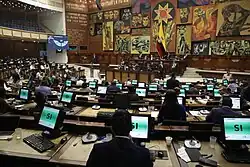 The National Assembly (Spanish: Asamblea Nacional) is the unicameral legislature of Ecuador. It replaced the National Congress in 2009 following reforms under the 2008 Constitution.[4] Within Ecuador, the National Assembly has the power to pass laws, while appointment of judges to the National Court of Justice is done by a separate Judicial Council.[5]