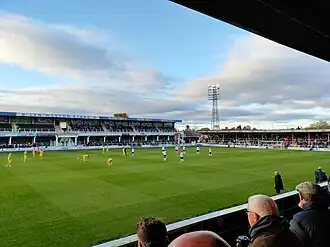 Hereford FC's record attendance for a home game at Edgar Street was 4,683, for a 1–0 win in the FA Vase semi-finals against Salisbury on 13 March 2016,[5] until the club's FA Cup first round match against Portsmouth in November 2022 attracted a crowd of 4,912.[6] It hosted Hereford FC's televised FA Cup second round replay against Fleetwood Town in December 2017.[7] The 2020–21 FA Trophy semi-final between Hereford FC and Woking was also played here, although it took place behind closed doors due to the COVID-19 pandemic, in which Hereford won 1–0 to make the final.