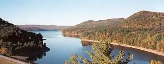 On March 27, 1930, the gates on the Conklingville Dam were closed and by 1931 the valley and surrounding communities on the banks of the river were displaced as the Sacandaga Reservoir was created.