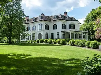 In 1860, Schermerhorn commissioned prominent Rhode Island architect George Champlin Mason Sr. to design him an Italianate-style villa on Narragansett Avenue in Newport, Rhode Island. He willed his Newport villa to his brother William and his eldest daughter, Fanny Schermerhorn Bridgham.[25] In 1911, the estate was acquired by Emily Lorillard (née Morris) Gallatin who renamed the property Chepstow.[26]
