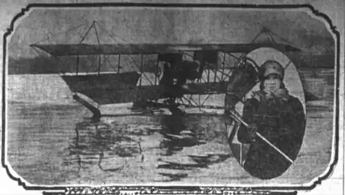 On September 1, 1912, Silas Christofferson made the first hydroplane flight in Oregon, taking off from Oaks Amusement Park.[10] He chose two women, Edna Becker and Mrs. R.F. Cox, to take turns flying with him.[10] By then, Becker was determined to become a pilot and had ordered her own biplane.[10] As she explained, "I have an inordinate craving to fly at a tremendous height, and I intend to indulge myself."[10]