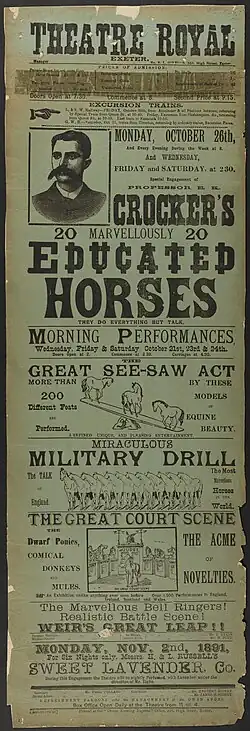"It was a weird kind of phrase, like, that I remembered as something as a kid. You know, my parents, my grandparents, my aunts and uncles, the whole family, were involved in carnival business and, like, circus business, so as a kid, we would get dragged to these things, and we'd have to spend all this time there. And that was just one of the attractions I remember, what they would call the trained animals, you know, educated horses."