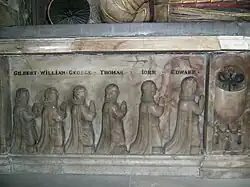 Littleton and Margaret had 14 children, many of whom did not survive childhood. The fifth child, and third son, Edward Littleton, succeeded him in his estates. All of the children, six sons and eight daughters, were represented on the front of their tomb in St. Michael's church, Penkridge, which also bears the effigies of the successor Edward and his wife, Mary Fisher, on an upper tier.