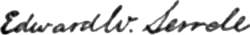 His wife, Jane, died on August 29, 1896.[2] They had four children, Edward William, Josephine Eva, Jesse Pound, and Harriette Marshall Serrell. Serrell married a longtime family friend, Marion Seaton Roorbach, on September 3, 1900.[2] The New York Times reported at the time that he was "Lying on a sick bed, from which he may never arise", ill from an attack of gastritis, "too weak even to sit up."[6] He did recover sufficiently to be moved to his wife's home on Staten Island. She died in 1904.