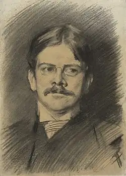 Edwin Austin Abbey RA (April 1, 1852 – August 1, 1911) was an American muralist, illustrator, and painter. He flourished at the beginning of what is now referred to as the "golden age" of illustration, and is best known for his drawings and paintings of Shakespearean and Victorian subjects, as well as for his painting of Edward VII's coronation.[1][2][3] His most famous set of murals, The Quest and Achievement of the Holy Grail, adorns the Boston Central Library.