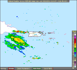 Police said a man was killed on October 26 in Juana Diaz. He was swept away in a river swollen by rain from Sandy's outer bands. In addition, flooding forced at least 100 families in the southwest to seek new shelter.[31]
