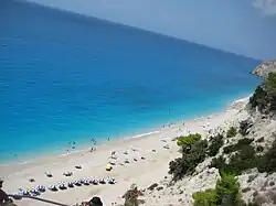 Egremni or Egremnoi (Greek: Εγκρεμνή or Εγκρεμνοί) is a remote beach located on the south-western coast of the Ionian island of Lefkada, north-western Greece. Since the creation of a sealed road during the mid-1990s, this remote beach has become one of the premier tourist destinations on the island, and in Europe as a whole.