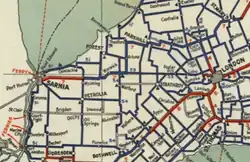 - ^ "Straighten London, Sarnia Highway". The Border Cities Star. Vol. 58, no. 41. April 18, 1947. p. 23. Retrieved February 21, 2021 – via Newspapers.com.