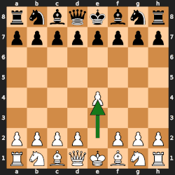 White, having the first move, begins with a King Pawn Opening, which on move three becomes the Ruy Lopez. White uses the opening to develop — white castles, opens lines, and brings out his pieces. Black's development lags, and Black makes more errors than White. At move 15 White has two of Black's pieces pinned, and a winning position. White soon captures Black's queen, gains a material advantage, and develops a dynamic mating threat. Black resigns.[15]