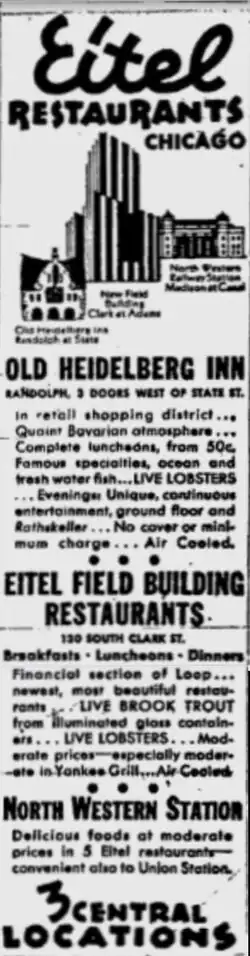 - Ab 1935: Eitel Field Building Restaurant]in Chicago's financial district.