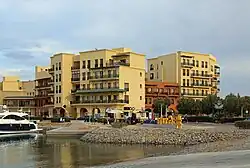 El Gouna's buildings were designed by European and American architects to resemble traditional rural Egyptian architecture such as that found in the Egyptian countryside and in Nubian villages. El Gouna specializes in watersports. There are several beaches including Zeytuna Beach (Arabic: شاطئ زيتونة) located on its own island, Mangroovy Beach, Moods Beach and other hotel beaches.[6][7]