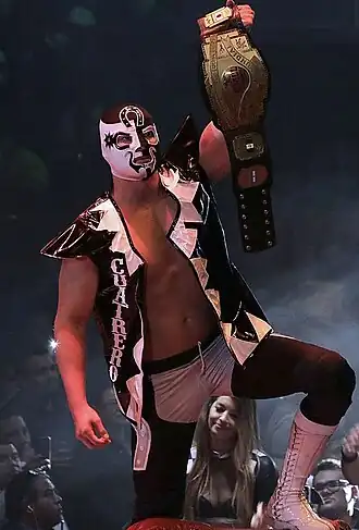 ![]() El Cuatrero holding the CMLL World Middleweight Championship in the air, November 2018 | |