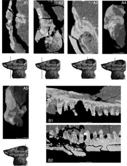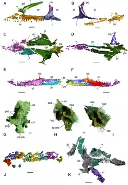 | Holotype skull, vertebrae and shoulder girdle (blocks I-II) | |