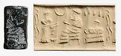 - ^ a b "Cylinder seal and modern impression: worshipper before a seated ruler or deity; seated female under a grape arbor Archived 4 December 2022 at the Wayback Machine", The Metropolitan Museum of Art.