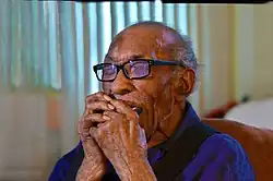 In 1994, Wilson was a recipient of a National Heritage Fellowship from the National Endowment for the Arts, which is the highest honor in the folk and traditional arts in the United States.[3] In that year he also recorded the bulk of the music included on his debut album.[1] Most of tracks on his 1995 LP This Train were recorded when Wilson was in his early eighties. The sides contained a mixture of solo efforts, some accompanied by his wife or with a church choir, and included "Ain't It a Shame", "This Train Is a Clean Train", and "Amazing Grace". The album also included six harmonica-dominated pieces unwittingly recorded with his children in 1948.[4] Wilson was still preaching, singing and playing harmonica in Detroit in 2015, at the age of 104.[5] Wilson died in Detroit, Michigan, on October 25, 2018, at the age of 107.[6]