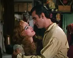Parker followed Detective Story with her portrayal of an actress in love with a swashbuckling nobleman (played by Stewart Granger) in Scaramouche (1952), a role originally intended for Ava Gardner. Parker later claimed that Granger was the only person she didn't get along with during her entire career.[8] However, they had good chemistry, and the film was a massive hit. MGM rushed her into Above and Beyond (1952), a biopic of Lt. Col. Paul W. Tibbets, Jr. (Robert Taylor), the pilot of the aircraft that dropped the atomic bomb on Hiroshima. It was a solid hit. While Parker was making Escape from Fort Bravo (1953), she signed a five-year contract with MGM.[16]