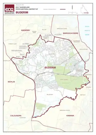 ![]() Map of the electoral district of Buderim, 2017 | |||||||||||||||