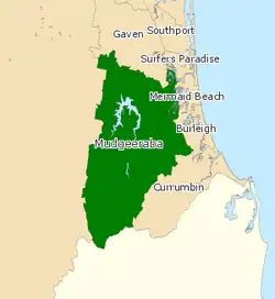 Mudgeeraba is an electoral district of the Legislative Assembly in the Australian state of Queensland. Based on the Gold Coast, the district has been held by both sides of politics over the course of its short history.[1]