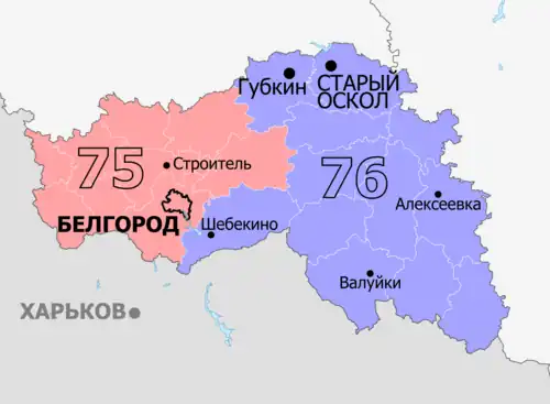 Gerrymandering is the process of drawing the boundaries of electoral districts to favor a certain political force.[2] In Russia, this comes through the "Lepestkovy" (Russian: лепестковый) drawing of constituencies.[3] These "Lepestkovy" drawing usually involves major cities and/or regional capitals being split up between multiple constituencies. This is done to split up urban voters (who tend to be more liberal) and pair them up with a bigger rural population. This is present in many of Russia's constituencies.