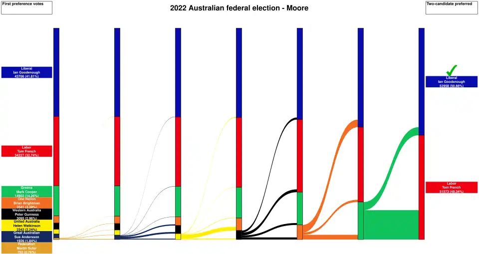 - ^ Moore, WA, 2022 Tally Room, Australian Electoral Commission.