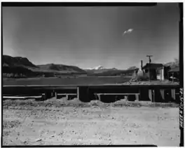 No hydroelectric energy is produced at the dam; water is channeled 18 mi (29 km) offsite to the Tacoma Hydro Generating Station via a 4,400 ft (1,300 m) open wooden flume, "one of only two wooden flumes still operating on hydro projects in the United States."[5] The Tacoma powerhouse stands in the Animas River Canyon and is accessible only by the Durango and Silverton Narrow Gauge Railroad.