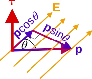 An object with an electric dipole moment p is subject to a torque τ when placed in an external electric field E. The torque tends to align the dipole with the field. A dipole aligned parallel to an electric field has lower potential energy than a dipole making some non-zero angle with it. For a spatially uniform electric field across the small region occupied by the dipole, the energy U and the torque are given by[2]