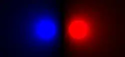 Potential map of a physical electric dipole. Negative potentials are in blue; positive potentials, in red.