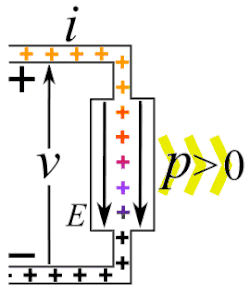 Since electric power can flow either into or out of a component, a convention is needed for which direction represents positive power flow.[2][3] Electric power flowing out of a circuit into a component is arbitrarily defined to have a positive sign, while power flowing into a circuit from a component is defined to have a negative sign. Thus passive components have positive power consumption, while power sources have negative power consumption. This is called the passive sign convention.