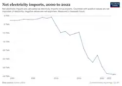 This page describes energy and electricity production, consumption and export in Laos. As of 2020, Laos had 10,021MW of electricity generation capacity, 80% of which came from hydropower. 75% of the electricity generated in Laos is exported, which has earned the country the moniker of "the battery of Southeast Asia". The state-owned electricity company, Électricité du Laos, sells electricity domestically for less than the cost of production. However, due to their growing export market, the Laos energy sector generated 12.8% of the nation's GDP in 2022.[1]