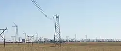 The connection to ground requires a specially designed ground electrode (or earth electrode).[1][2] The electrode is usually located several tens of kilometres from the converter station in order to avoid possible problems or corrosion in the converter station grounding system. [3] The electrode line connects the converter station to the grounding electrode. The electrode line can be implemented, depending upon the location of the electrode (onshore or in the sea), as ground cables, as overhead line, or as a combination of ground cable and overhead line.