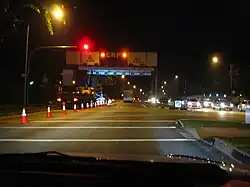 The Electronic Road Pricing (ERP) system is an electronic toll collection scheme adopted in Singapore to manage traffic by way of road pricing, and as a usage-based taxation mechanism to complement the purchase-based Certificate of Entitlement system. There are a total of 93 ERP gantries located throughout the country, along expressways and roads leading towards the Central Area.[1] As of July 2024, only 19 ERP gantries are in operation and are all in expressways where congestion continues to be severe.[1][2]