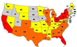 Twelve states require EAC certification for machines used in their states. Seventeen states require testing by an EAC-accredited lab, but not certification. Nine states and DC require testing to federal standards, by any lab. Four other states refer to federal standards but make their own decisions. The remaining eight states do not refer to federal standards.[4]
