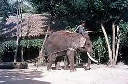 The elephant has been a contributor to Thai society and its icon for many centuries.[1] The elephant has had a considerable impact on Thai culture.[2] The Thai elephant (Thai: ช้างไทย, chang Thai) is the official national animal of Thailand. The elephant found in Thailand is the Indian elephant (Elephas maximus indicus), a subspecies of the Asian elephant. In the early-20th century there were an estimated 100,000 captive elephants in Thailand.[3] In mid-2007 there were an estimated 3,456 captive elephants left in Thailand and roughly a thousand wild elephants. By 2017, the number of captive elephants had risen to an estimated 3,783.[4][5][6] The elephant became an endangered species in Thailand in 1986.[7]