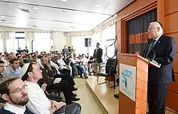 Eli is home to Bnei David, a pre-military Mechina academy. Bnei David is the first pre-military Orthodox Mechina academy, having been founded by Eli Sadan and Yigal Levinstein as such in 1988.[7] Many of the graduates have reached high rank in the Israel Defense Forces (IDF). It is an integral part of Eli, as many of the rabbis, administrators, graduates, and students live in the settlement. There are currently over 500 students studying at Bnei David, and over 2,500 graduates, over 40% of whom became officers. A majority served in either combat or elite units.[8] The yeshiva also offers post-army academic programs. Shimon Peres has praised the academy, calling it a "pride for the country".[9]