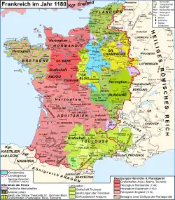 In 1167,[3] Elisabeth's brother Ralph died of leprosy. As his marriage to Margaret had proved childless, Elisabeth inherited the County of Vermandois,[4] which she ruled over jointly with her husband; this pushed Flemish authority further south, to its greatest extent thus far, and threatened to completely alter the balance of power in northern France.