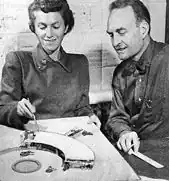 Elizabeth Close and her husband Winston reviewing an architectural model (c. 1955) | |
