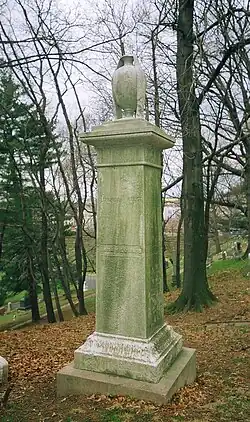In 1857, Ellet replaced Ann Stephens as literary editor of the New York Evening Express.[34] Ellet's husband died two years later in 1859. She continued to write, and, although they had no children, she promoted charities for impoverished women and children by speaking in public to raise funds. An Episcopalian most of her life, she converted to Catholicism in her later years.[7] She died of Bright's disease in New York City on June 3, 1877, and was buried beside her husband at Green-Wood Cemetery in Brooklyn.[2]