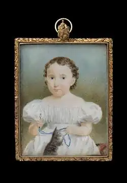 Goodridge was born in Templeton, Massachusetts, the seventh child and fourth daughter of Ebenezer Goodridge and his wife Beulah Childs. Eliza's earliest miniatures date from the late 1820s and are similar in style to her sister's work, although not as technically advanced.[1] At an early age, she began drawing and showed an aptitude for art. Women's educational opportunities were limited at the time and where Goodridge lived, so she was essentially a self-taught artist.[2]