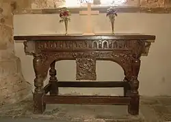 In some instances, the injunctions contradicted the 1559 prayer book. While the prayer book directed the use of ordinary bread for communion, the Injunctions required traditional wafers to be used.[41] There were also conflicting directions for the placement of the communion tables that were to replace stone altars. According to the prayer book, the table should be placed permanently in the chancel oriented east to west. The injunctions ordered the "holy table" to be carried into the chancel during communion services but at all other times to be placed where the altar would have stood. When not in use, it was to be oriented north to south, the same as an altar.[49] These provisions offended many Protestants, and in practice, the Injunctions were often ignored by church leaders.[50]