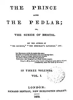 - The Prince and the Pedlar, or The Siege of Bristol, 1839
