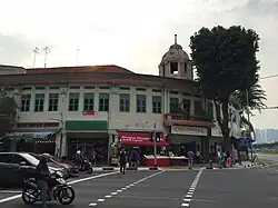 The two-storey building comprises a row of shophouses with "varying building facades and heights".[1] It features an "iconic" curved façade and "notable" balconies and twin cupolas, is one of three buildings in the area to feature the Star of David on its exterior.[2] The star can be found on a pediment which also features the year "1924" on the top of the building.[3] According to the Urban Redevelopment Authority, it serves as "historical evidence of Singapore's pre-WW2 Jewish urban community in the Mt Sophia/Selegie area." The authority also wrote that both the building and the next-door Rex Cinema "give a distinctive character to the important trunk road which leads out of the City Centre and towards the Kandang Kerbau/Serangoon Road area."[1]
