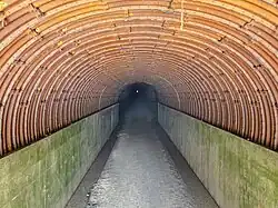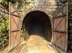 The tunnels are closed for the season by the beginning of November, using the doors that the railroad added to prevent storm damage. The debate on when to close the tunnel caused a conflict between the U.S. Fish and Wildlife Service and the organizers of the Rails to Trails Marathon.[14] The northern long-eared bat hibernates in Tunnel Number three. It was listed as threatened species in 2015. The Rails to Trails Marathon, a Boston Marathon qualifier, moved their event date to earlier in October from November in 2017 to accommodate an earlier tunnel closing than the original November 15 date.[15]