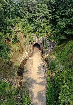 The Elroy-Sparta State Trail is a 32.5-mile (52.3 km) Wisconsin State rail trail between Elroy and Sparta, Wisconsin. Considered to be the first rail trail when it opened in 1967, it was designed for foot, bicycle, equestrian and light motorized traffic. Designated a multi-use trail, it offers recreational access to the routes and is open to the public.[2] The trail is part of the larger Wisconsin bike trail system operated by the state of Wisconsin.[3] It passes through rural scenery and three tunnels.[4] It is one of six connecting trails in west-central Wisconsin. It was added to the Rails-to-Trails Conservancy hall of Fame in September 2008.[5] It is one of the most popular trails in Wisconsin.[6]