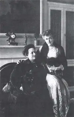 The daughter of a prosperous New York lawyer, Elisabeth ("Bessie") Marbury, like de Wolfe, was also a pioneer career woman. She was one of the first female theater agents and one of the first woman Broadway producers. Her clients included Oscar Wilde and George Bernard Shaw. During their nearly 40 years together, Marbury was initially the main support of the couple. In a 2003 book, David Von Drehle wrote of "the willowy De Wolfe and the masculine Marbury ... cutting a wide path through Manhattan society. Gossips called them "the Bachelors."[16][24][25][26][27] Expecting nothing to change in their relationship due to her marriage to Mendl, de Wolfe remained Marbury's lover until the latter's death in 1933.[28]
