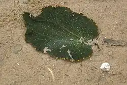 Elysia bangtawaensis is dorso-ventrally flattened and grows to about 35 millimetres (1.4 in) in length. The parapodia are very thin but wide, edged with 12 to 40 orange spots. Both dorsal and ventral surfaces are a dark green colour, lightly speckled with orange and white dots and with some small opaque white spots.[3]