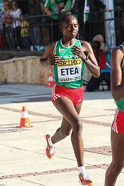 Emebt Etea Bedada (born 11 January 1990 in Waliso) is an Ethiopian long-distance runner who competes in road running competitions. She emerged quickly as a junior (under-19) runner with an African Junior Championships double in the 1500 metres and the 3000 metres. She was a junior bronze medalist at the IAAF World Cross Country Championships in 2008.
