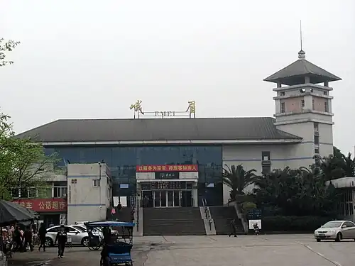 Emei railway station was built with the Chengdu–Kunming railway and opened in 1965. The station was moved approximately 500m south to allow it to serve the Chengdu–Mianyang–Leshan intercity railway. It reopened in its new location on 26 April 2017.[1]